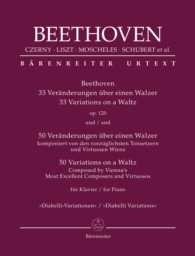 Beethoven's "Diabelli Variations", written between 1819 and 1823, mark the pinnacle of his oeuvre for variations and next to Bach's "Goldberg Variations" form one of the most important contributions to this genre. in addition to Beethoven, 50 other composers from Austria, mainly Vienna, followed Diabelli's call to create variations for his famous waltz, among them Czerny, Moscheles, Fr. X. Mozart, Schubert, the 11-year-old Liszt and J. N. Hummel. The variations first printed by Diabelli fictively as "Fatherlandish Union of Artists Part I" (Beethoven's, Op. 120) and "Part II" (the 50 variations of Vienna's "most excellent composers and virtuosos") are presented here by Mario Aschauer for the first time in one edition.