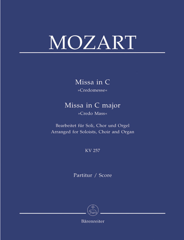 The name "Credo Mass" is taken from the acclamations of "Credo" that constantly interrupt the like-named movement. Dating from the end of 1776, this Mass is remarkable for its density of invention within the narrowest of confines. Further, its instrumental accompaniment has an almost chamber-music quality that emerges time and again into almost symphonic proportions. Our arrangement successfully patterns the idiosyncrasies of the orchestral writing. The solo and choral writing leaves the Urtext of the "Mozart Edition" entirely untouched.