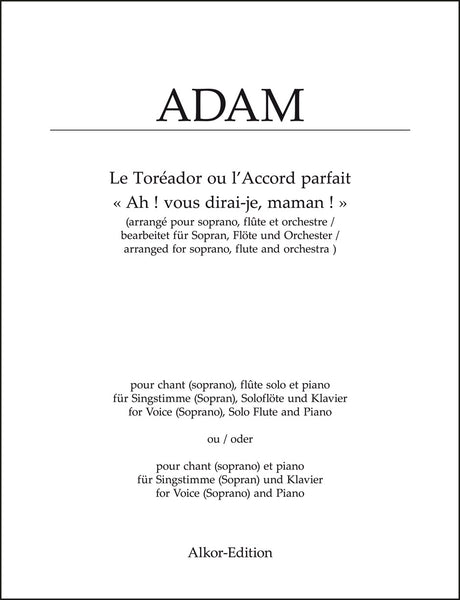 $1,251.75Prix unitaire /IndisponibleAdam: "Ah! vous dirai-je, maman!" (arr. for soprano, optional flute & piano)