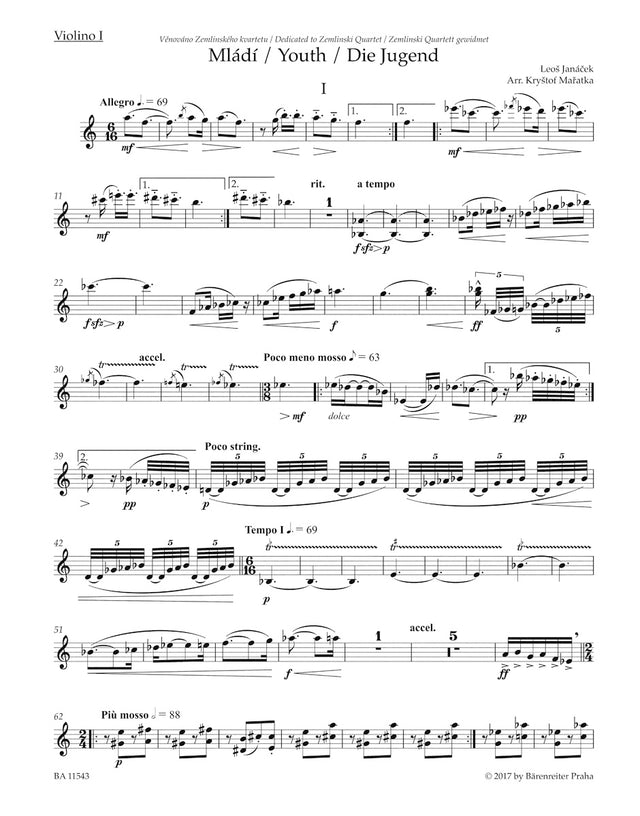 Youth for wind sextet, is a masterpiece from Janáček's late period (1924). Maratka has successfully managed to transform the concise winds' sound that give this work its unique flavour into the timbre of the strings, thereby creating a "third string quartet" of the composer.