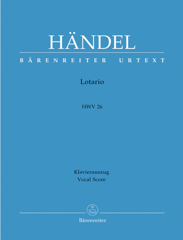 Handel's opera Lotario was first heard at the King's Theater in the Haymarket on 2 December 1729 and had a run of nine performances. Though never revived in the composer's lifetime, Handel reused many of its arias in his later operas, sometimes altering the words. The historical background of the plot is the conflict between Otto I (912–973) and Berengar of IVrea for the Italian crown and Otto's marriage to the Italian queen Adelaide in 951. in the course of composition, the name of the hero (" Ottone " in Salvi's libretto) was altered to " Lotario " since Handel had already written an opera entitled Ottone on the life of Otto II (955–983) in 1722. The vocal score contains the version composed for the performances of December 1729 and January 1730. It is based on the Urtext of the Halle Handel Edition. Clear and spacious appearance on the page Practical and well presented vocal score Original Italian with a German translation