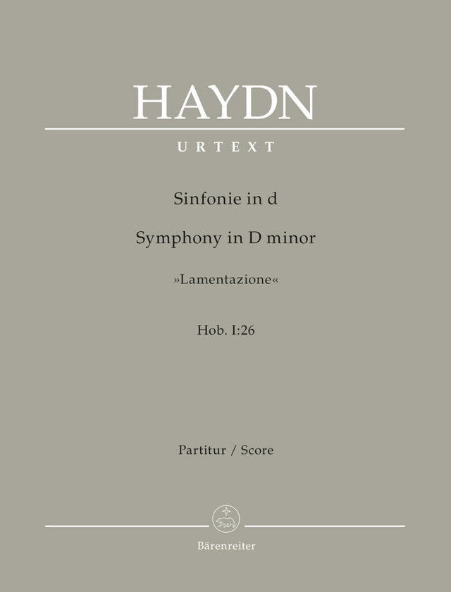 Haydn's Symphony No. 26 received its nickname "Lamentazione" during his lifetime, though it is unclear whether this stems directly from the composer. This work probably originated no later than 1770. Its first and second movements quote excerpts from Gregorian chants used in Holy Week. in Haydn's day it was customary to play individual movements in church services, and it may be assumed that these two movements were performed, and possibly composed, independently from each other. Continuing the collaboration between Bärenreiter and the Henle publishing company in the areas of large-scale choral works, operas and symphonies, Haydn's Symphony No. 26 is appearing, based on the Henle Complete Edition of the "Works of Joseph Haydn". The complete performance material for several of Haydn's "Sturm and Drang" symphonies and all of the London and Paris symphonies has already been published. • Based on the Henle Complete Edition of the "Works of Joseph Haydn" • Orchestral parts available in a large format (25.5 x 32.5 cm)
